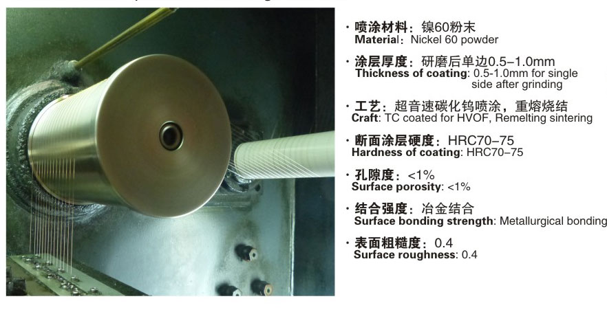 品名:尼霍夫多頭拉絲機退火滾筒表面燒結鎳合金實例